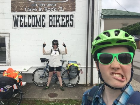 Not very well rested, early the next morning we set out for Cave-In Rock, IL. Our time in Kentucky was very short, only traversing 110 miles of it. Before long, we met another bicycle tourist who spoke to us from the middle of the road, while we stayed in the margin. We didn’t exchange names, but we did find out that he was based out of St. Louis and that he does loops around the country all beginning and ending in his hometown of St. Louis. He also asked if we had yet to get off of our bikes to push them up any monster hills to which we replied no, not yet.