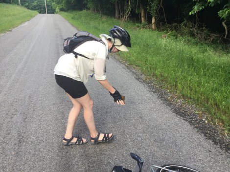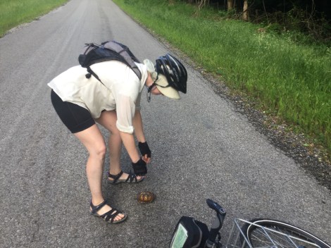 We had to break the route into a few long and a few short days based on where the campgrounds and towns are situated so the next day was a short 30-mile ride to Golconda, IL. Along the way, we helped a few more turtles safely cross the road.