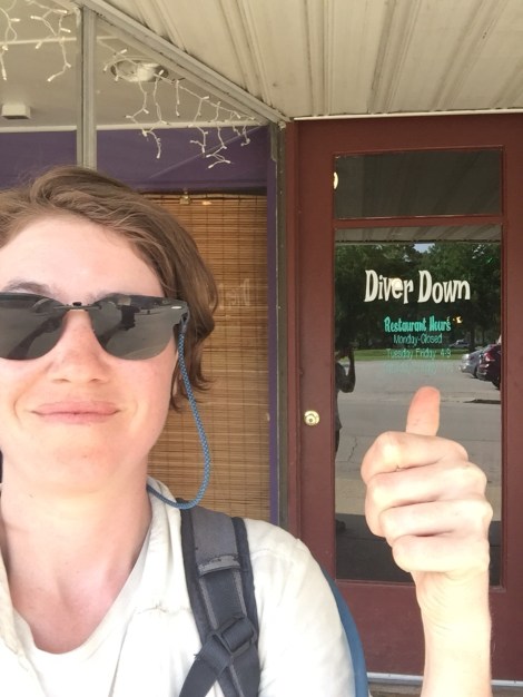 After we finished up a blog post, we were ravenous so we asked around for a good restaurant recommendation. Everyone in town told us that the gas station was our only option, but we decided to do some exploring to find out for ourselves. We are happy that we did because we found the Diver Down, a restaurant and bar down by the Marina. They played all the 80s hits that had us dancing in our seats while we ate the best salad we have had on the road thus far. Before this dinner, all of the salads we had ordered were skimpy wilted iceberg lettuce with very strange canned fruit and vegetable combinations topped with uncomplimentary shredded cheese. In contrast, this salad had many varieties of fresh greens and fresh vegetables. We followed the salad with a deluxe grilled cheese on Texas toast which included two types of cheese, grilled onions and mushrooms, and fresh tomato and lettuce. For dessert we shared a homemade key lime pie. We let the owners know that they were doing things right and that we thoroughly enjoyed and appreciated their attention to detail. Good food is hard to find in the Southeastern US, so we are very happy when we find it.