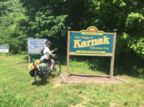 Karnak was the last town in Illinois where we stayed. Prior to the 2017 Solar Eclipse, the city park was a cyclist-only campground without water or a bathroom. For the big event, the city, with the help of a non-profit organization, established the Main Brothers Campground, which now includes composting toilets and spigots. Now RVs can stay with full electric, water, and sewer hookups. The campground has been a nice economic boost for the small village, having paid for all of the new signage in and around the town.