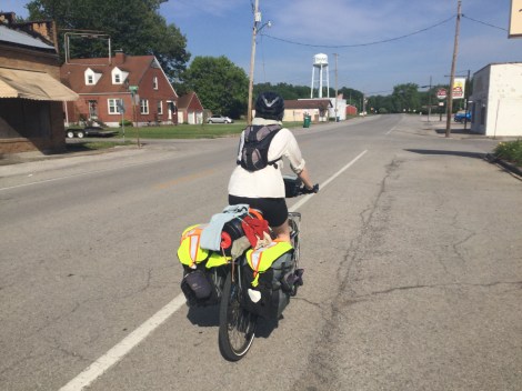 Though, that day, we encountered our first massive hills. Adventure Cycling Association generally includes topography with their maps, but for whatever reason, the Great Rivers South maps do not include this incredibly important information. The map’s description indicates that for section 1 of Great Rivers South, there are a lot of rolling hills averaging 50 ft and that we would climb 23,500 feet in total. That day, we spent a lot of time pushing our bicycles up hills that were as steep, though not as long nor high as the mountains we cycled/pushed our bikes up in Colorado. The hill in the above photo is steeper than it looks! We do hope that the next printing of their maps include topography, as the mental preparation for the hills is very important to keep our spirits high, not to mention so we can estimate how many miles we may be able to cycle in a day. One 50 mile day may take us 5 hours if it is flat, where another 50 mile day through rolling hills may take us 7-8 hours.