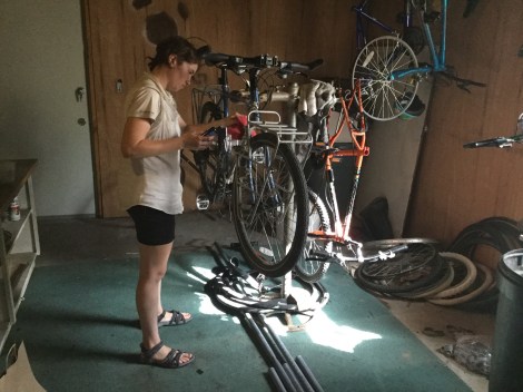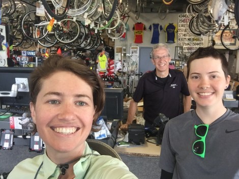 After we got settled, we headed to Cape Bicycle, the shop Judy insisted that we go to given its proximity to her house, the kind service, and the fact that she had worked there after she retired from teaching at the local elementary school. She first learned about bicycle mechanics on her tour across the country, where she absorbed knowledge of how every piece of the bike works by watching them being taken apart and put back together again. After the tour, she bought a basic repair manual and studied it cover to cover. When she felt confident in her skills and wanted to continue working after her retirement, she went to the bike shop and asked if they had ever hired a woman.