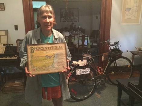 When it was time to head back, we were greeted by our host, Judy, and her little rescue dog, Heinzy (because she is a mix). We have stayed with some incredibly kind and generous people so far on this trip, but Judy was the first person we have met who is practically famous. We knew that she was an avid cyclist and had traveled through much of the world on her bicycle, but it wasn’t until later that she casually revealed that she was among the 4,000 riders on the 1976 BikeCentinnial, which was the premier trans-American bicycle tour that became the inspiration for our beloved Adventure Cycling Association. We were appropriately starstruck to be standing in the presence of a living legend.