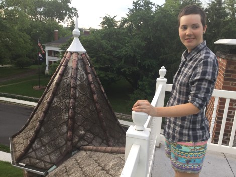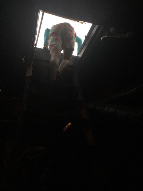 We followed Judy up into the attic and up a ladder, through a narrow hatch onto the roof.