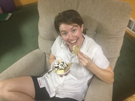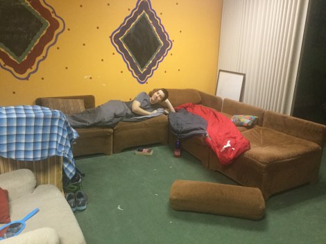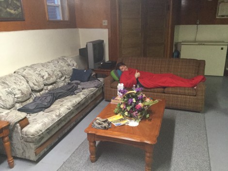 The original plan was to stay at the wilderness camp operated by the church but the camp counselors, our contacts, were incredibly busy with campers and did not immediately answer their phones. Luckily, we met the church’s pastor as we were admiring the mural on the side of the post office (which we later learned was made possible by a local resident who asked people to donate money instead of presents for her 90th birthday to support her dedication to the town). Pastor Gary allowed us to sleep in the church that night and invited us to eat whatever we found. We enjoyed a huge bowl of ice cream with cookies left over from the preschool graduation and very comfortable night’s sleep.