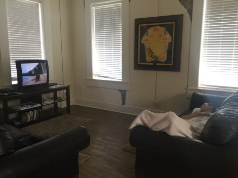 There is a suggested donation of $20 a night which we gladly paid, but we also did our part to keep the hostel clean for other cyclists. Behind Kelly is Al’s framed racing jersey and life story, which was an inspiring example of how one person can make a huge difference to their community.