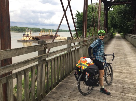 On day 34 of our journey, we entered our seventh state, Missouri! We have spent our entire lives chuckling at the pseudonym “Misery” for the state and boy were we proved wrong. The first town that we entered was Cape Girardeau and we were impressed from the very moment that we cycled over the bridge onto cobblestone streets near the university and the historic downtown district. It was an almost 50-mile day from Karnak so we were eager to find our Warm Showers host’s home. Alas, when we called from outside her house, we were asked to come back at 3 when she returned. So, we cycled the short distance back into town to enjoy a burrito and cool off in the air conditioning at the library to update our blog while we waited.