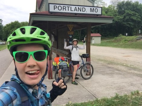 We made it to Portland! Portland, Missouri. Along the Katy Trail are plenty of small towns and replica train depots that house informative signs about the history of each town, as well as providing water and bathrooms to travelers. These covered areas and benches were very much appreciated because they allowed us to eat our lunches and snacks in comfort.