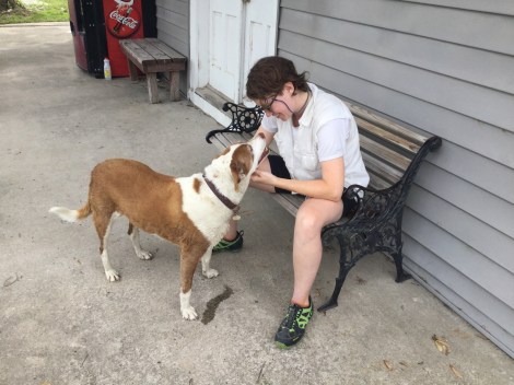 After we arrived, Kelly spotted a dog in the field nearby and whistled to it. The dog immediately started wagging her tail and ambled over to her, wearing what we later learned from a passer-by was her signature grin. She belongs to some people up the hill, we were told, and is friendly to everyone, earning her the nickname Smiley.
