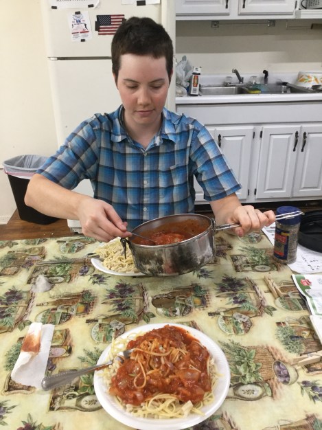 Generous cyclists before us had left some goodies in the fridge so we ate that night for free, a delicious spaghetti with tomato sauce with fresh onions and seasoned with the Italian seasoning we brought.