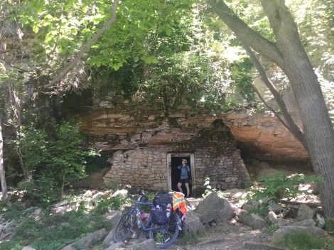 There are numerous interesting historical points of interest along the trail, including the below structure, situated between Rocheport and Easley, which consisted of a rough stone wall enclosing one of the many caves worn into the rock walls by the Missouri River. We later learned that the structure was built by railroad workers at the turn of the century as an explosives bunker.