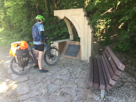 That afternoon, we arrived in Dutzow at one of the several dozen trail-heads to the Katy Trail, one of the original Rails-to-Trails projects in our country. In 2008, the Katy Trail was added to Rails-to-Trails Conservancy Hall of Fame. The Katy Trail is the old route of the Missouri-Kansas-Texas railway (M-K-T, or “Katy” for short).