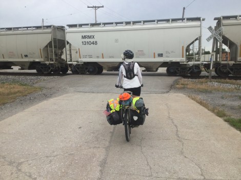 The bridge over the train tracks was out so we had to roll our bikes over them instead.