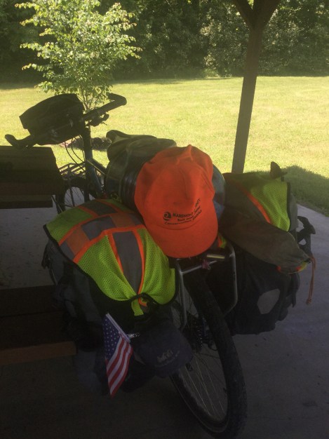 The camp host checked in on us one last time and asked what our route was. He gave us a very simple short cut so we wouldn’t have to tack the 30 miles we had intended to cycle that day to Meramec State Park onto the next day’s ride. Instead of cycling 75 miles to get us back on schedule, we were lucky to cycle 55 miles into Marthasville the next day.