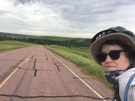 South Dakota is made up largely of rolling hills and vast open country. We often went for hours without seeing any evidence of human intervention on the land except for the road (with its cracks filled in with bulging, bumpy seams of tar) we we were riding on.
